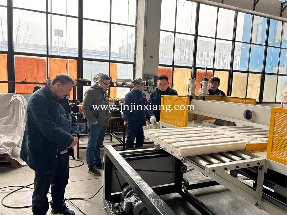 臨近春節(jié),工廠依然在忙碌的趕工期,上周五,公司又迎來(lái)了來(lái)自阿曼的客戶,客戶在我公司購(gòu)買了XPS擠塑板開(kāi)槽機(jī),驗(yàn)收設(shè)備的同時(shí)客戶又參觀工廠并表達(dá)了合作意向。