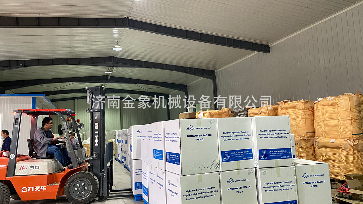 作為國內(nèi)水駐極熔噴布供應(yīng)商代表之一,金象機械生產(chǎn)研發(fā)的水駐極熔噴布成功銷往韓國,為當(dāng)?shù)胤酪呶镔Y生產(chǎn)提供了幫助,以下為發(fā)貨現(xiàn)場: